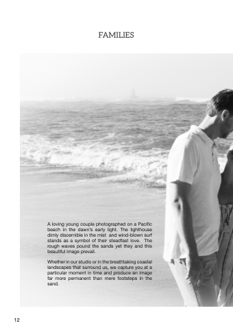 A loving young couple photographed on a a a a a a Pacific beach in in in in the the dawn’s early light light The lighthouse dimly discernible in in in the the the mist and and wind-blown surf stands as as a a a a a a a a a symbol of their steadfast love The rough waves pound the the the sands yet they and and and this beautiful image prevail Whether in in in our studio or in in in the the breathtaking coastal landscapes that surround us we capture you at at at a a a a a a a a a a a a a a a particular moment in in time and and produce an an an an an image far more permanent than mere footsteps in in the sand 12