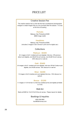 30 30 images in in fin fin 8x12 (matted print and and digitals) folio box OR premium album and and digitals digitals one one 30x45 fine fine art art art canvas canvas one one 24x36 fine fine art art art canvas canvas 20% discount on on wall art art Gold - $3600