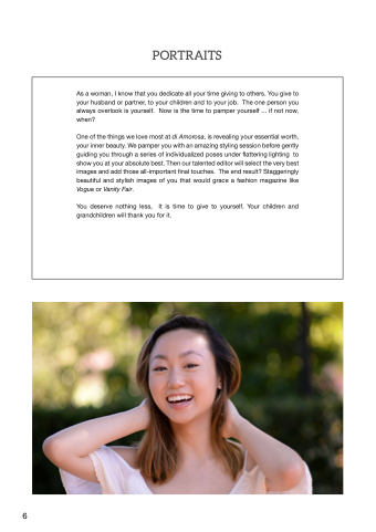 One of the things we love most at di Amorosa is revealing your your essential worth your your inner beauty We pamper you you you you with an amazing styling session before gently guiding you you you you you through a a a a a a a a a a a series of individualized poses under flattering lighting to to show you you you at at your absolute best best Then our our talented editor will select the very best best images images and and add those all-important final touches The The end result? Staggeringly beautiful and and stylish images images of you that would grace a a a a a a a a a a a a a a a a a a fashion magazine like Vogue or Vanity Fair You You deserve nothing less It is time to to give to to yourself Your children children and and grandchildren will thank you for it 67