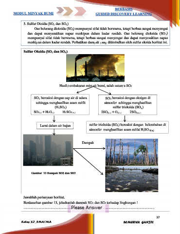 Hasil pembakaran minyak bumi, salah satunya SO 2