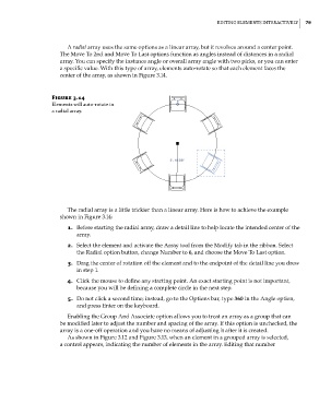 A radial array uses the same options as a linear array, but it revolves around a center point.