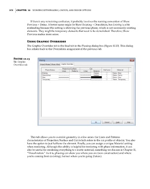The Graphic Overrides tab is the final tab in the Phasing dialog box (Figure 10.13). This dialog