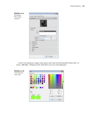 Green = 255, Blue = 0 (Figure 10.18). Click OK to close the Color dialog box.