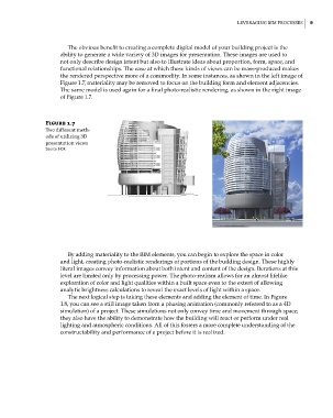 and light, creating photo-realistic renderings of portions of the building design. These highly