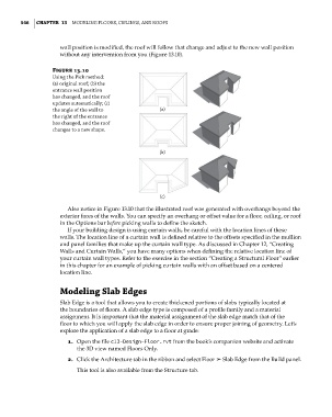 Also notice in Figure 13.10 that the illustrated roof was generated with overhangs beyond the