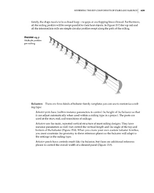 all the railing profiles will be swept parallel to their host objects. In Figure 15.7, the top rail and