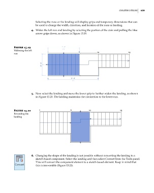Selecting the runs or the landing will display grips and temporary dimensions that can