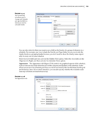 Appearance The Appearance tab (Figure 17.18) controls the graphical aspects of the schedule,
