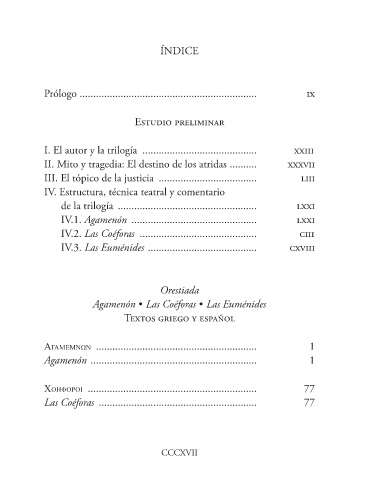 IV.3. Las Euménides ........................................ cxviii