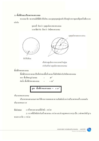 พื�นท���ิวของทรงกลม เป�น���เท่าของพื�นท��วงกลม ���งม�รั�ม�เท่ากั�รั�ม�ของทรงกลม