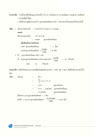 ดังนั�น ��,���,��� ลูกบาศก์เซนติเมตร = 35 , 360 , 000 = 35,360 ลิตร