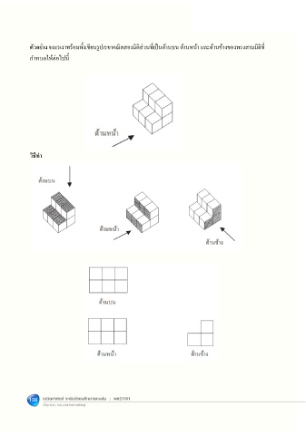 120 ตัวอย่าง จงแรเงาพร้อมทั�งเ�ี�นร�ปเร�า���ต�องม�ต��่�นที�เป�นด้าน�น ด้านหน้า แ��ด้าน�้าง�องทรง�ามม�ต�ที� กําหนดให้ต่อไปนี� วิธีทํา 128 คณิตศาสตร์ ระดับมัธยมศึกษาตอนต้น : พค21001 ส�ำนักงำน กศน.จังหวัดกำฬสินธุ์