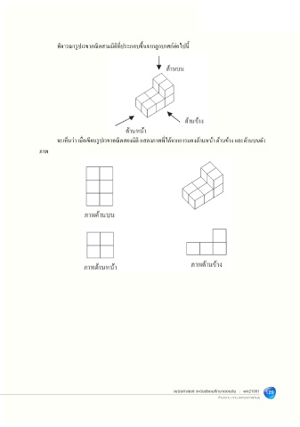121 พ�จา��า�ูป���า���ต�า���ต��ี�ป��กอบ���นจากลูกบาศก์ต่อไปนี� จ����น�่า ����อ��ี�น�ูป���า���ต�อ���ต� ����ภาพ�ี�ไ��จากกา��อ���าน�น�า ��าน��า� �ล���านบน��� ภาพ คณิตศาสตร์ ระดับมัธยมศึกษาตอนต้น : พค21001 129 ส�ำนักงำน กศน.จังหวัดกำฬสินธุ์