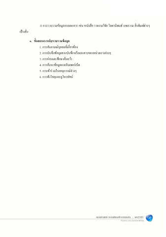 �� การรวบรวมข้อมูลจากเอกสาร เ�่น หนังสือ รายงานวิจัย วิทยานิพน�์ บทความ สิ�งพิมพ์ต่างๆ