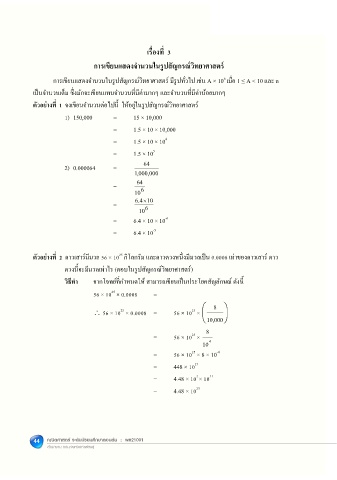 การเขียนแสดงจํานวนในรูปสัญกรณ์วิทยาศาสตร์ มีรูปทั�วไป เช่น A × 10 เม��อ 1 ≤ A < 10 และ n