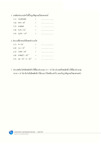 5. จงเขียนจํานวนต่อไปนี�ในรูปสัญกรณ์วิทยาศาสตร์