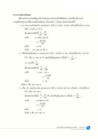 1� 25% ของ 60 เ�่ากั�เ�่าไร หมายความว่า ถ้ามี 25 ส่วนใน 100 ส่วน แล้วจะมีกี�ส่วนใน 60 ส่วน