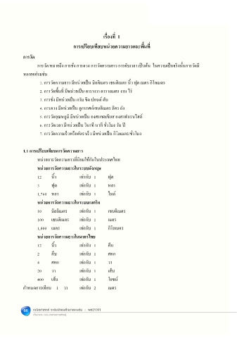 �� การวัดความยาว มีหน่วยเป็น มิลลิเมตร เ�นติเมตร นิ�ว ฟุต เมตร กิโลเมตร