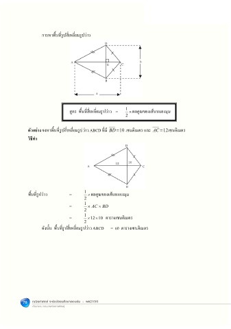 ตัวอย่าง จงหาพื�นท��รู�ส��เหล��ยมรู���า� ���� ท��ม� BD 10 เซนติเมตร และ AC 12เซนติเมตร