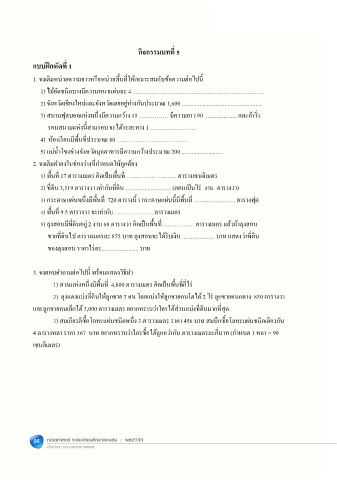 �) ที�ดิน 3�11� ตารางวา เท่ากับที�ดิน ............................... �ตอบเป�นไร่ งาน ตารางวา)