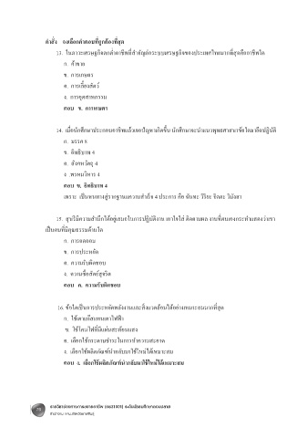 14. เมื�อนักศึกษาประกอบอาชีพแล้วเจอปัญหาเกิดขึ�น นักศึกษาจะนําแนวพุทธศาสนาข้อใดมายึดปฏิบัติ