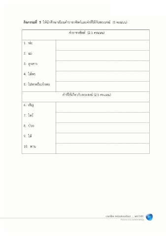 กิจกรรมที่ 5 ใหนักศึกษาเขียนคําราชาศัพทและคําที่ใชกับพระสงฆ (5 คะแนน)