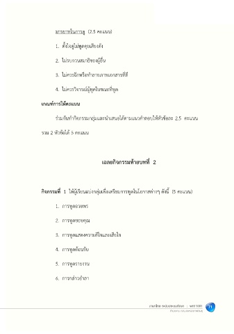 รวมกันทํากิจกรรมกลุมและนําเสนอไดตามแนวคําตอบใหหัวขอละ 2.5 คะแนน
