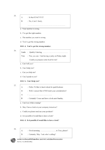 ตอบ d. You’ve got the wrong number.