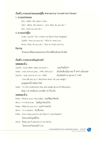 เรื่องที่ 2 การแนะนําตนเองและผูอื่น (Introducing Yourself and Others)