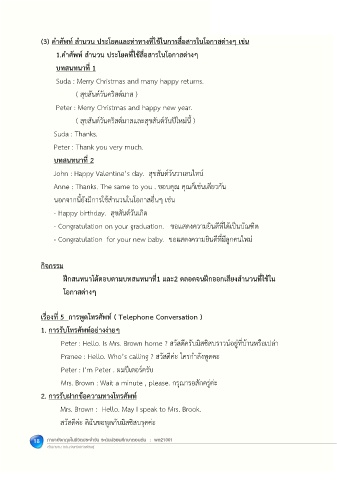 ฝกสนทนาโตตอบตามบทสนทนาที่1 และ2 ตลอดจนฝกออกเสียงสํานวนที่ใชใน