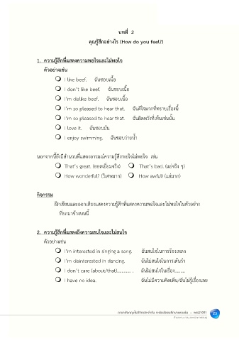 1. ความรูสึกที่แสดงความพอใจและไมพอใจ