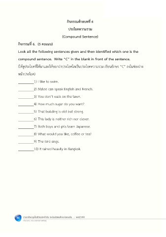 (ใหดูประโยคที่ใหมาและใหบอกวาประโยคใดเปนประโยคความรวม เขียนอักษร “C” ลงในชองวาง