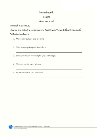 Change the following sentences into Past Simple Tense. (เปลี่ยนประโยคตอไปนี้