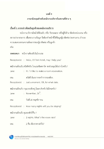บทสนทนา พนักงานตอนรับในโรงแรม