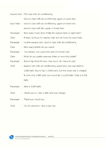 Passenger : I prefer express train, second class with air-conditioning.