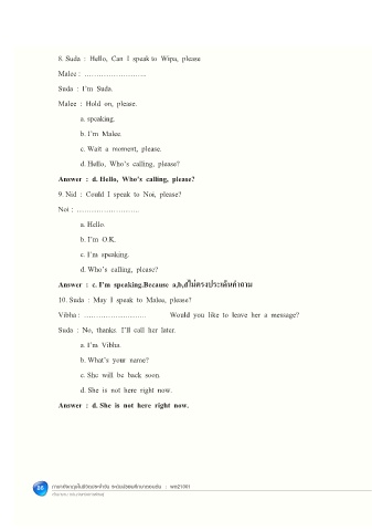 8. Suda : Hello, Can I speak to Wipa, please