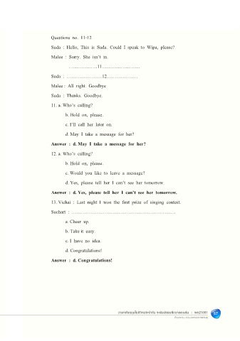8. Suda : Hello, Can I speak to Wipa, please Questions no. 11-12