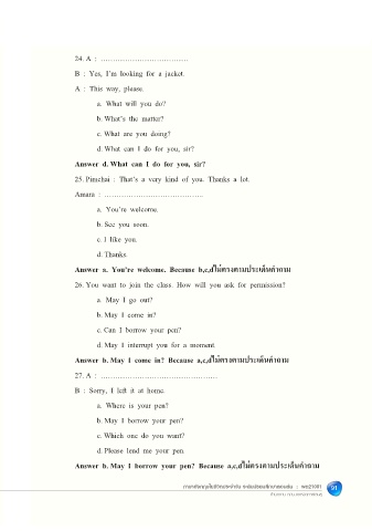 22. A : Excuse me,…………………………. 25. Pimchai : That’s a very kind of you. Thanks a lot.