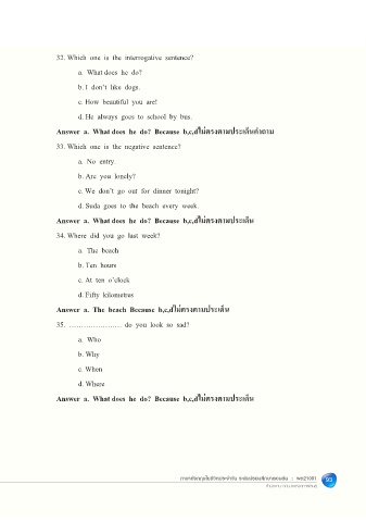 Answer c. I’m sorry. Because a,b,dไม่ตรงตามประเด็นคําถาม 33. Which one is the negative sentence?