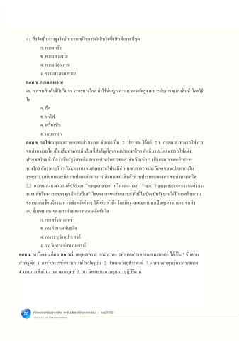 48. การขนสินค้าที่มีปริมาณ ระยะทางไกล ค่าใช้จ่ายถูก ความปลอดภัยสูง เหมาะกับการขนส่งสินค้าโดยวิธี