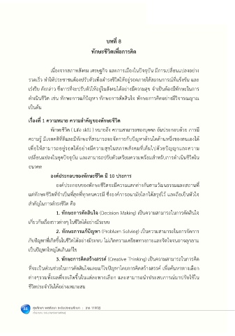 ดําเนินชีวิต เชน ทักษะการแกปญหา ทักษะการตัดสินใจ ทักษะการคิดอยางมีวิจารณญาณ