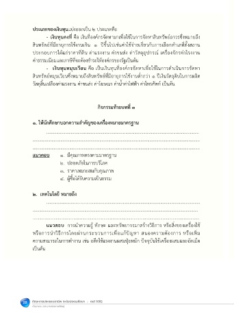 ......................................................................................................................................... แนวตอบ เงินที่องคกรจัดหามาเพื่อใชลงทุน และดําเนินการประกอบกิจการเพื่อหวังผลกําไร