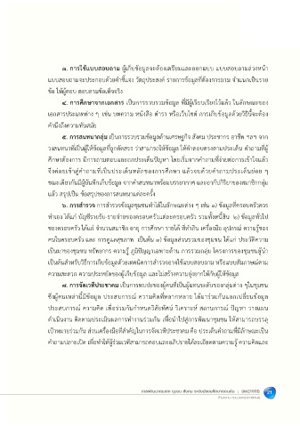 เอกสารประเภทตาง ๆ เชน บทความ หนังสือ ตํารา หรือเว็บไซต การเก็บขอมูลดวยวิธีนี้จะตอง