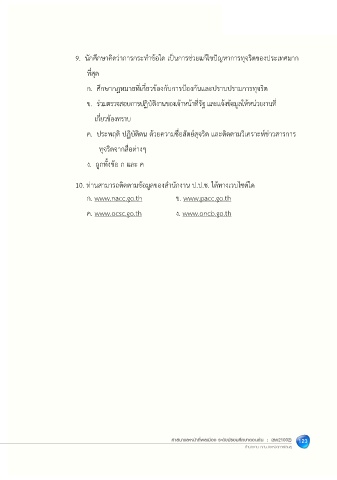 9. นักศึกษาคิดวาการกระทําขอใด เปนการชวยแกไขปญหาการทุจริตของประเทศมาก