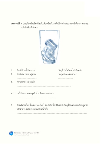 5. ถาจะใหไอน้ําเปลี่ยนสถานะเปนน้ํา ตองใหไอน้ําไปสัมผัสกับวัตถุที่มีระดับความรอนสูงกวา