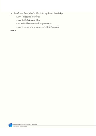 30. ข้อใดเป็นการให้ความรู้เกี่ยวกับไฟฟ้าไปใช้อย่างถูกต้องและปลอดภัยที่สุด