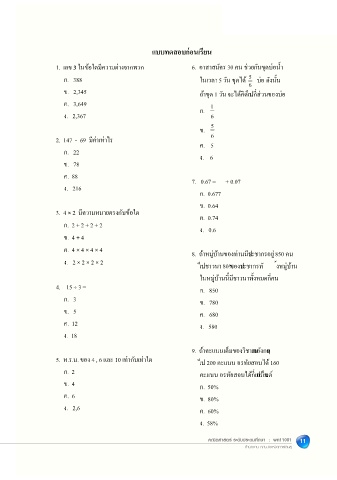 1. เลข 3 ในข้อใดมีความต่างจากพวก 6. อาสาสมัคร 30 คน ช่วยกันขุดบ่อนํ�า