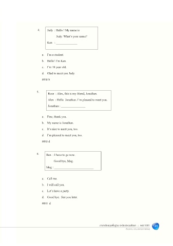 2. Malee : Hello ! My name is 5. Rose : Alex, this is my friend, Jonathan.