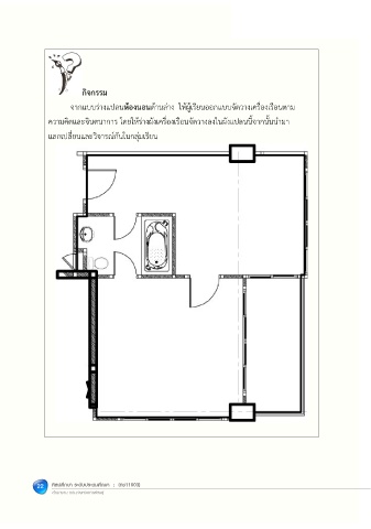จากแบบรางแปลนหองนอนดานลาง ใหผูเรียนออกแบบจัดวางเครื่องเรือนตาม