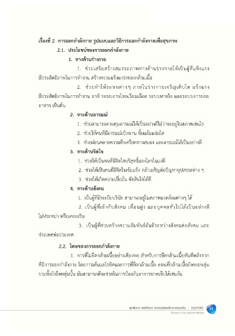 เรื่องที่ 2 การออกกําลังกาย รูปแบบและวิธีการออกกําลังกายเพื่อสุขภาพ